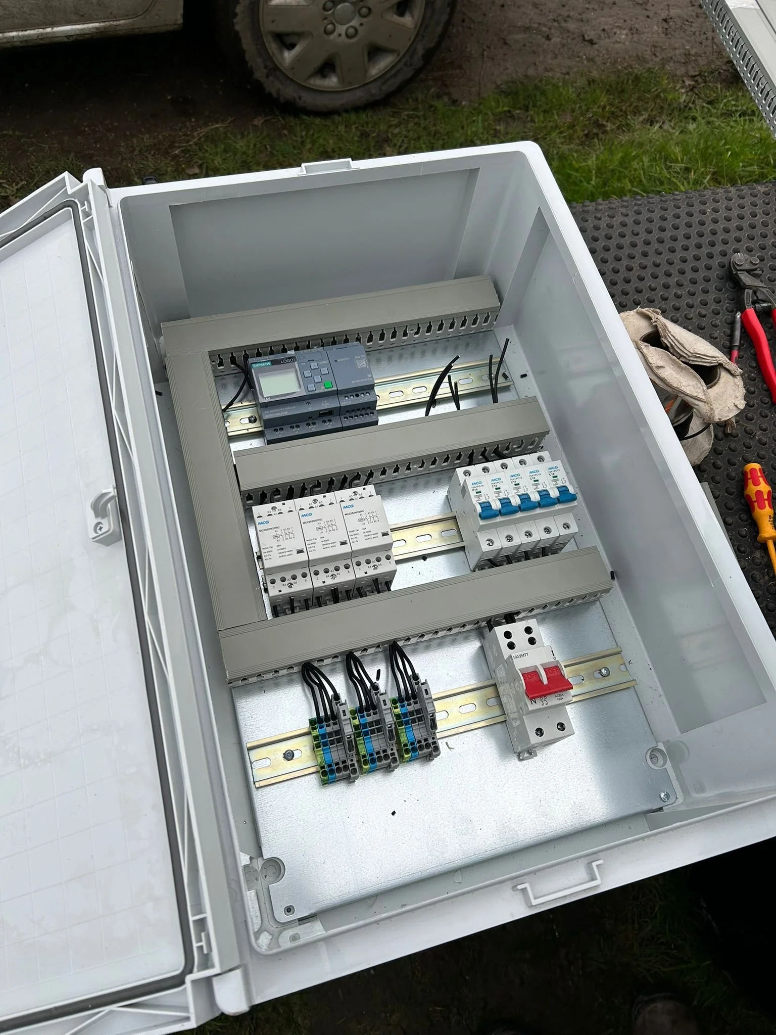 Built and supplied fully assembled, wired and tested. The only connection required is mains supply into the labelled isolator and the motor connected into the labelled din rail terminals.